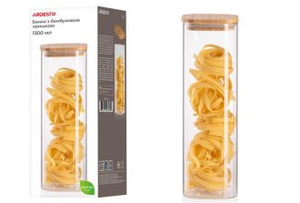 Банка для зберігання Ardesto Midori, 1300мл, скло, бамбук, квадратна, прозорий
