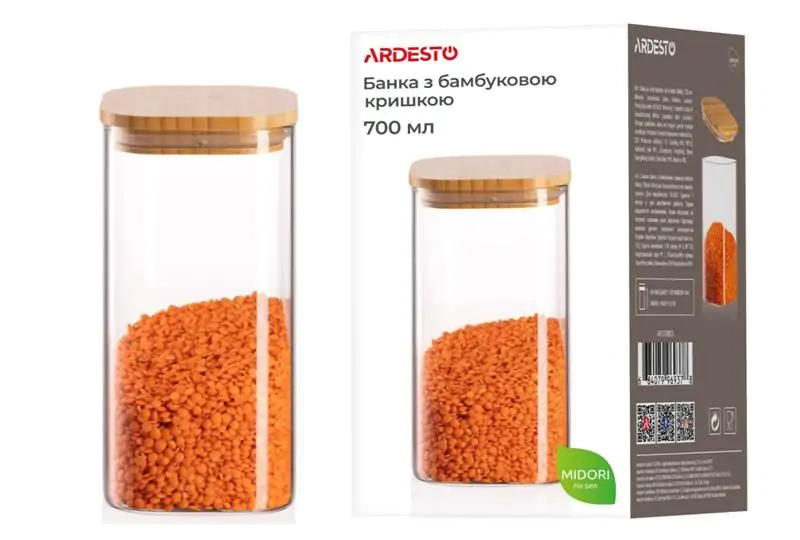Банка для зберігання Ardesto Midori, 700мл, скло, бамбук, квадратна, прозорий