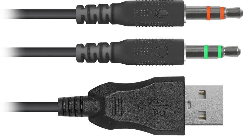 Тип під'єднання: Дротове Тип конструкції: Повнорозмірні Інтерфейс: 2 х 3.5 мм (mini-Jack), USB Довжина кабелю: 2 м