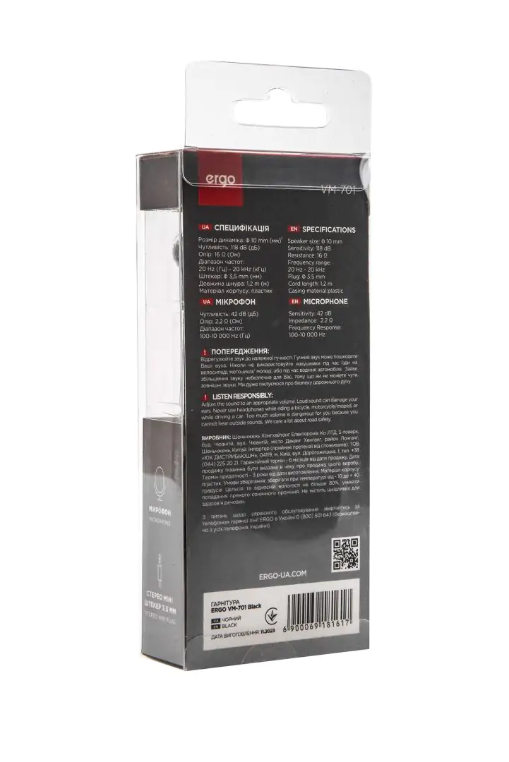 Дротові навушники ERGO VM-701 BLACK – повністю класична модель гарнітури, якій не треба зарядний кейс і яка завжди напоготові, щоб забезпечити зв’язок з вільними руками та прослуховування музики без пауз на підзаряджання. Кнопки управління гучністю на дроті полегшують користування даними навушниками.