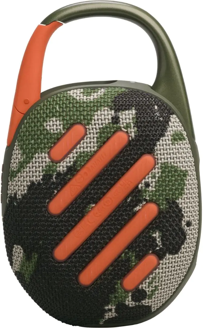 Ультрапортативная колонка JBL Clip 5 имеет достаточно малый размер, чтобы удобно держать ее в одной руке, но пусть размер не вводит вас в заблуждение. Широкий, полностью интегрированный карабин достаточно большой, чтобы прикрепить колонку почти к чему угодно. Мощный динамик и пассивный излучатель обеспечивают громкий, глубокий звук JBL Pro Sound и яркие басы. Колонка может работать до 12 часов в режиме воспроизведения на одном заряде — и даже больше, если включить JBL Playtime Boost. Говоря о дизайне, JBL Clip 5 сертифицирована по стандарту IP67, имеет водонепроницаемый и пыленепроницаемый корпус, поэтому ее можно взять с собой в следующий поход или в кемпинг. Объедините две JBL Clip 5 вместе для получения стереозвука или мгновенно подключите ее к нескольким динамикам с поддержкой JBL Auracast для еще большего звучания на большем пространстве.
