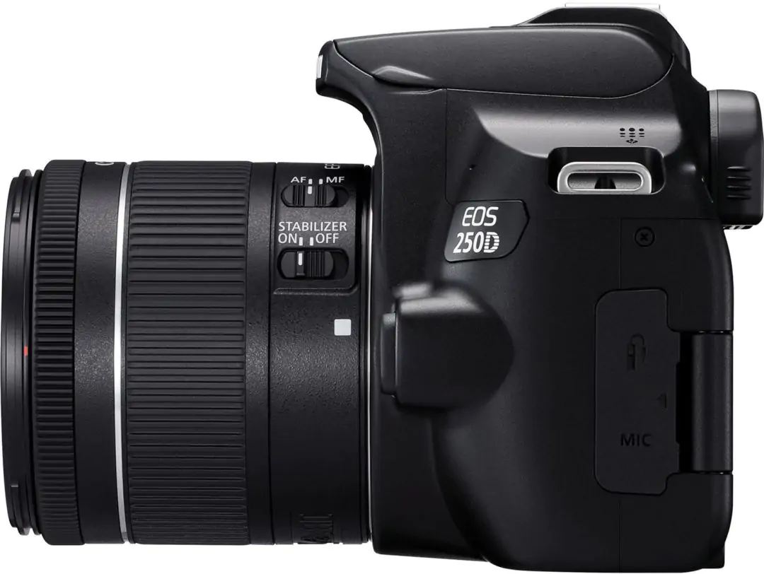 Canon EOS 250D - найлегша у світі цифрова дзеркальна камера з поворотним екраном поєднує в собі зйомку в традиційному положенні та передові технології. Камера дозволяє з легкістю створювати прекрасні фотографії і відео у форматі 4K і забезпечує інтуїтивну взаємодію з мобільними пристроями.