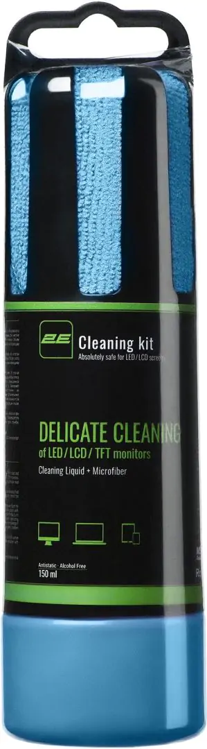 Набор предназначен для мягкого и безопасного удаления грязи, пыли и жирных пятен с экранов электронных устройств – мониторов, ноутбуков, телевизоров и другой техники. Флакон оснащён распылителем, жидкость не содержит спирта, а салфетка отлично устраняет любые следы и разводы.