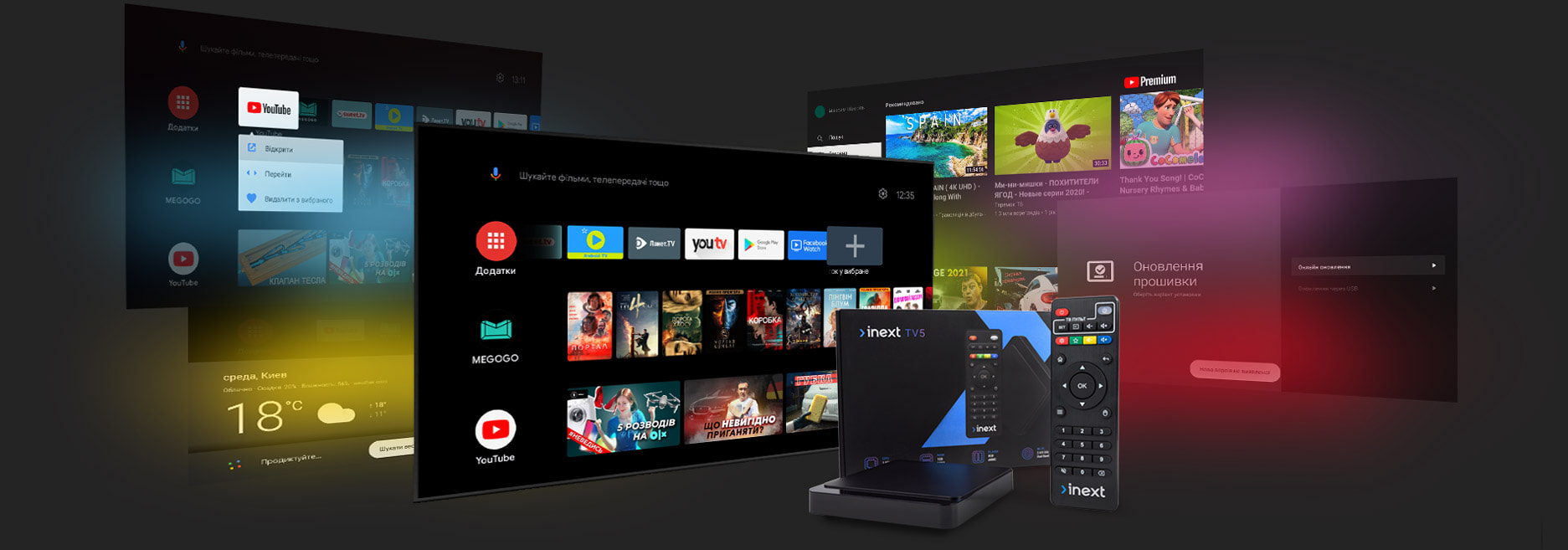 ТВ-приставка inext TV5 Ultra делает с обычного телевизора - SmartTV. Открывает доступ к невероятному колличеству контента - большинству популярных видеосервисов, интернет-телевидению, фотографий, любимой музыки.
