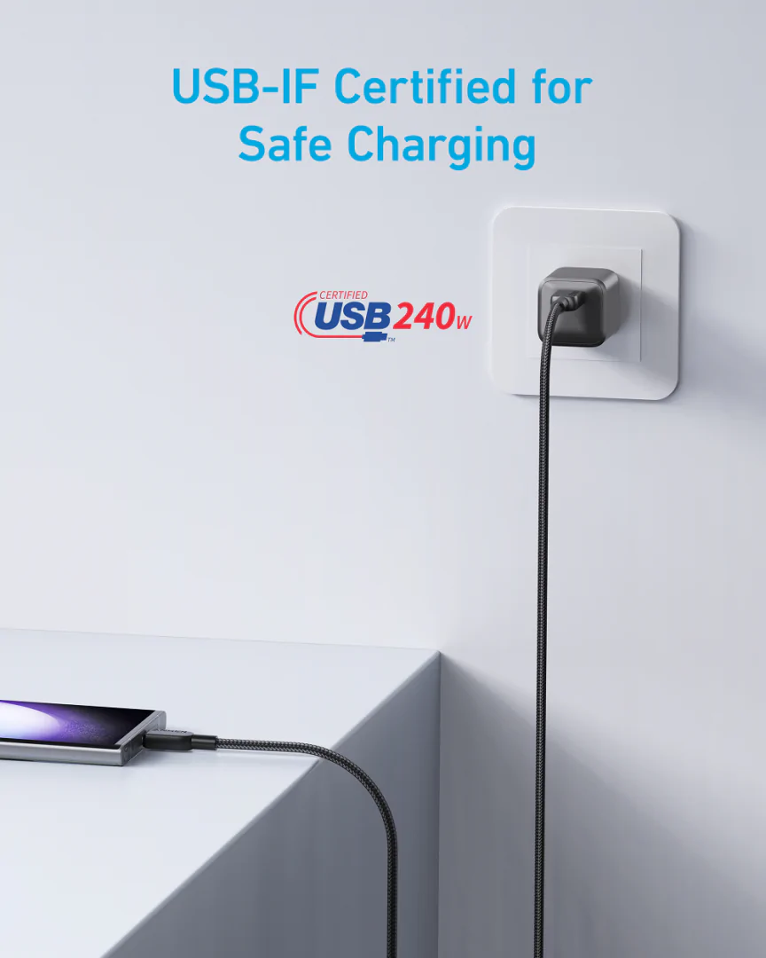 Гарантія безпеки, сертифікована USB-IF Заряджайте спокійно, знаючи, що ваші пристрої захищені сертифікованими стандартами безпеки USB-IF.