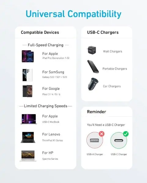 Сертифікація безпеки Цей продукт пройшов суворі тести якості, щоб забезпечити безпечне, надійне та довговічне заряджання. Кабель відповідає стандартам безпеки USB-IF, тому ваші пристрої завжди будуть захищені.