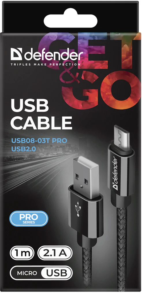 Кабель Defender USB08-03T PRO USB2.0, AM-MicroBM Black, 1m (87802) (6499806)