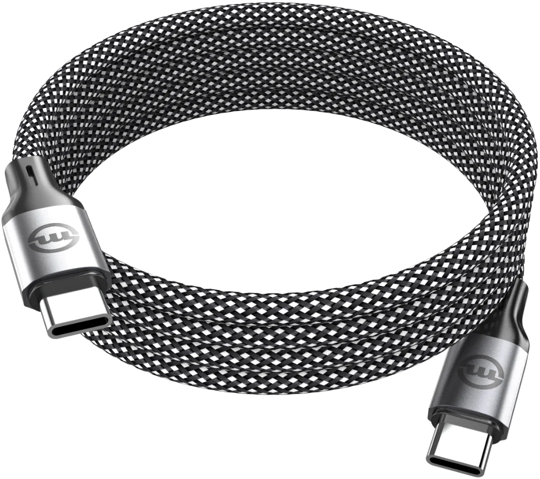 Магнитный кабель USB-C на USB-C от Mobile Origin невозможно запутать благодаря прочным самоскручивающимся магнитам и металлическим разъемам, которые проходят строгие испытания на долговечность в течение десятков тысяч циклов.