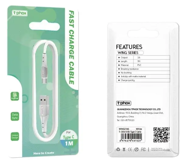 Кабель T-PHOX Wing T-C836 Type-C - 1m (White) (6821499)