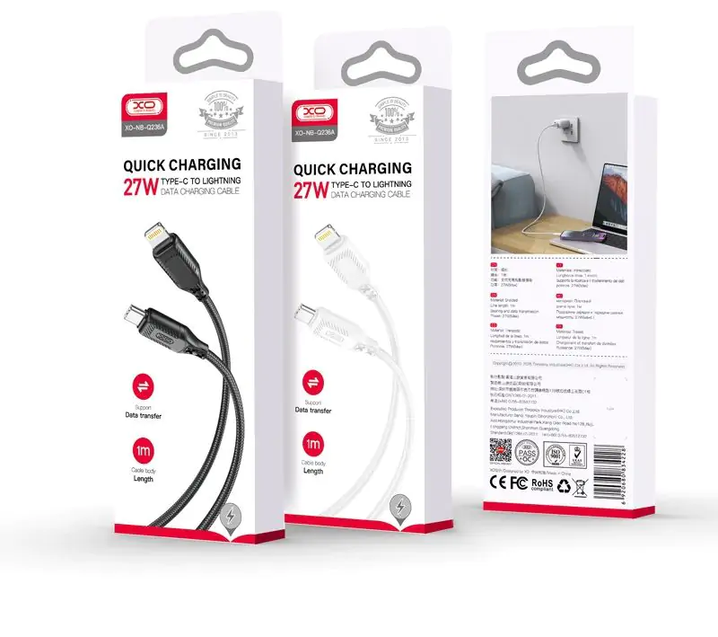 Кабель XO NBQ236A Braided призначений для синхронізації і заряджання смартфонів, планшетних ПК та інших пристроїв із роз'ємом Lightning