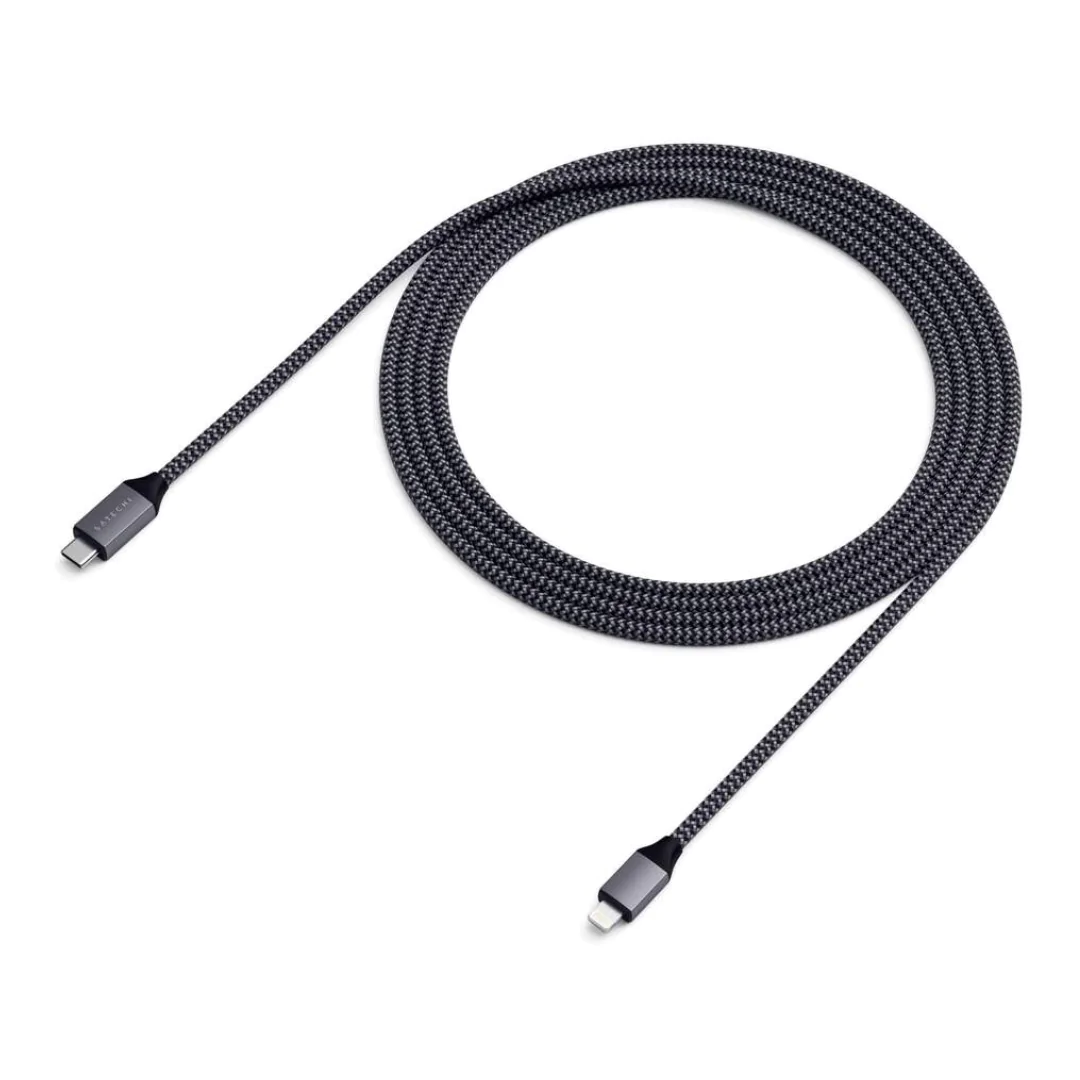Кабель Satechi Lightning - USB-C с сертификацией MFi и элегантным плетённым дизайном создан для повседневного использованияс вашими устройствами Apple. Заряжайтесь с комфортом – со своей кровати или дивана, благодаря длинне кабеля 1,8 м для удобной и быстрой зарядки, где бы вы не находились.