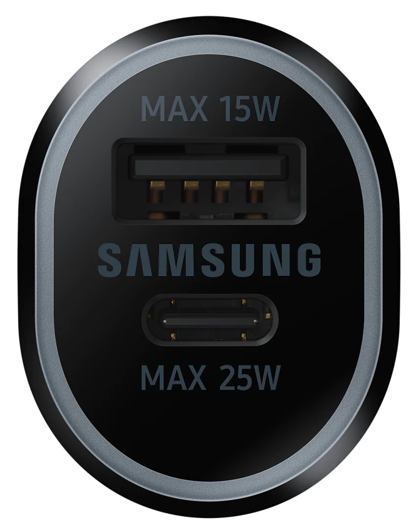 Подвійна зарядка одночасно Цей компактний зарядний пристрій Samsung оснащений двома портами, щоб ви могли використовувати його одночасно для декількох девайсів. Отже, навіть коли ви у дорозі, ваші мобільні пристрої будуть у повному порядку, а ви завжди будете на зв'язку.