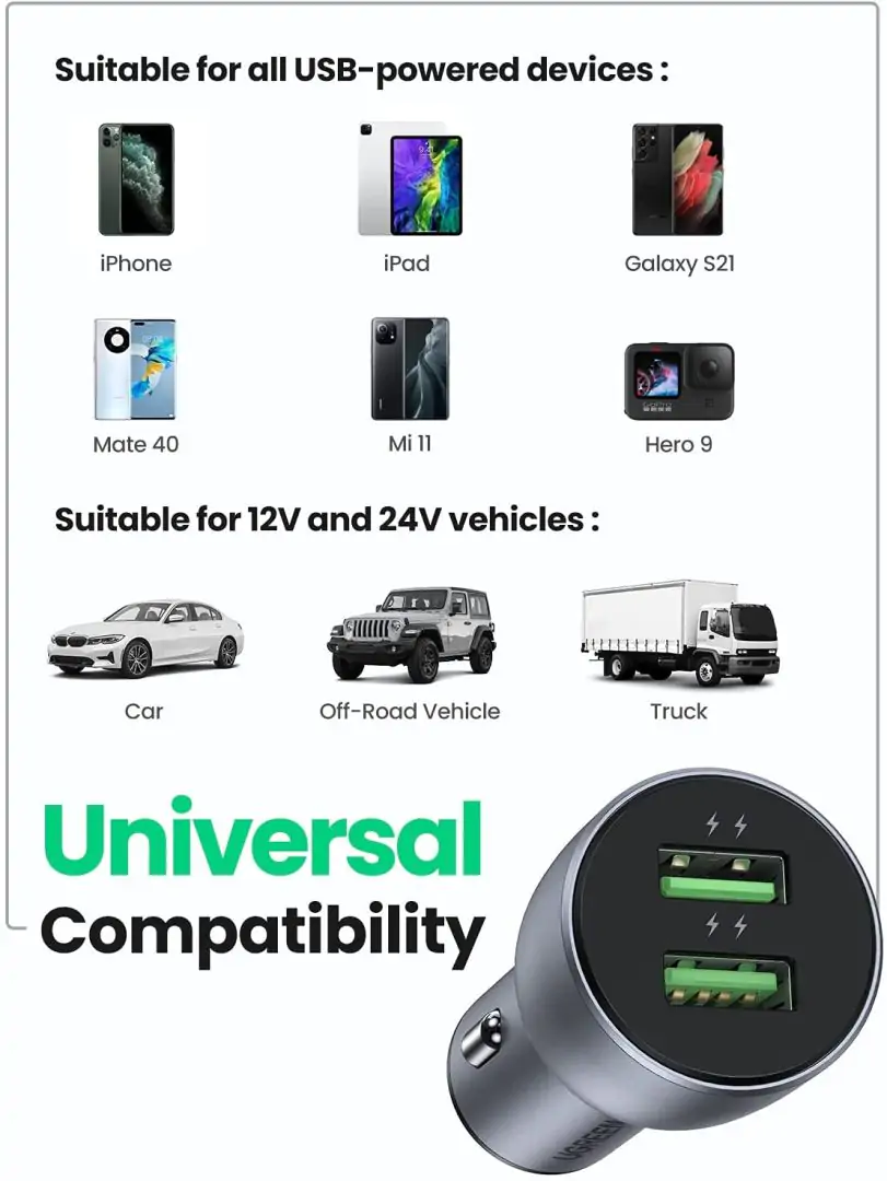 Автомобільний зарядний пристрій Ugreen CD213 36W 2xUSB QC 3.0 3A Car Charger (Dark Blue) (6689298)