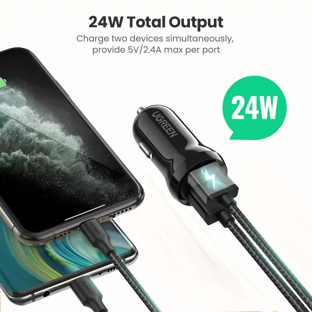 Автомобільний зарядний пристрій Ugreen ED018 24W 2xUSB Car Charger (Black) (6689291)