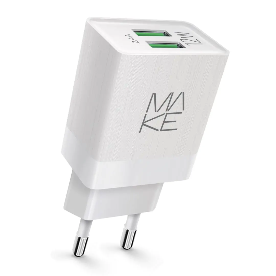 Зарядний пристрій мережевий MAKE 12W 2USB 2.4A White