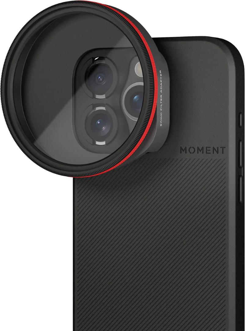 Этот адаптер позволяет использовать любые светлофильтры диаметром 67 мм с вашим iPhone 15 Pro, iPhone 15 Pro Max, iPhone 16 Pro и iPhone 16 Pro Max. Только вставьте адаптер в чехол Moment и накрутите светлофильтр и вы готовы до съемки.