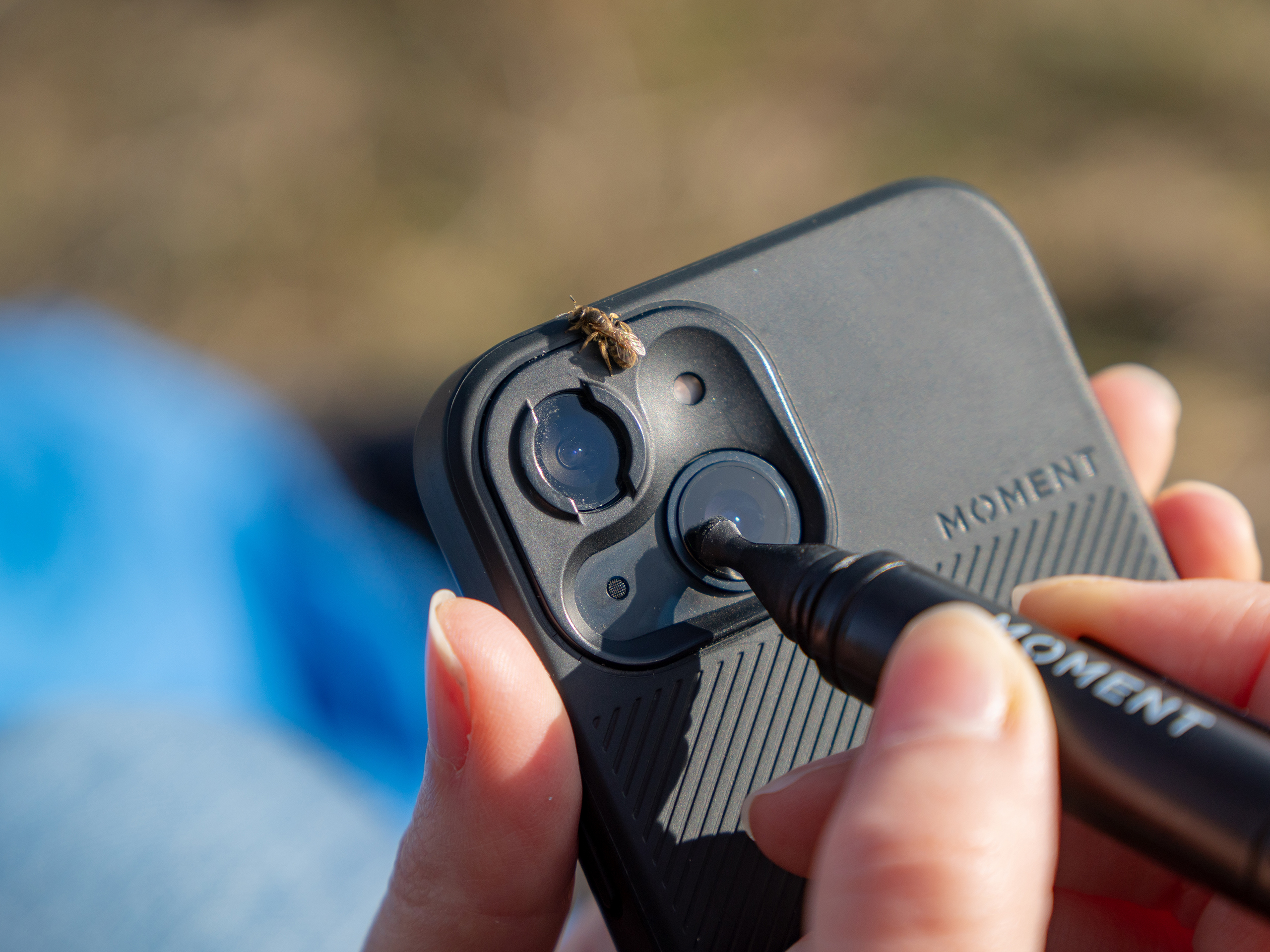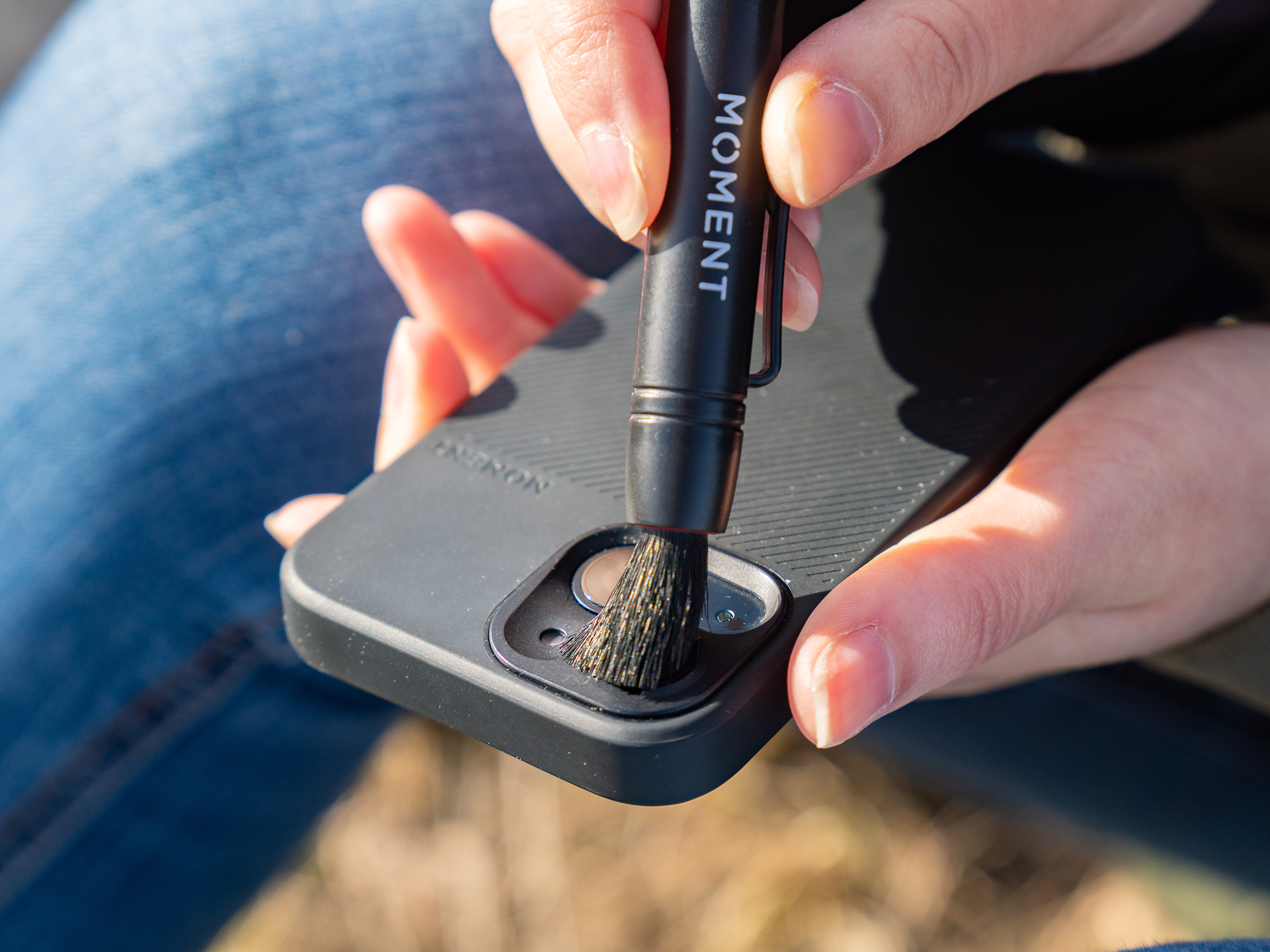 Подушечка специально разработана для ухода за линзой сзади объективов Moment.