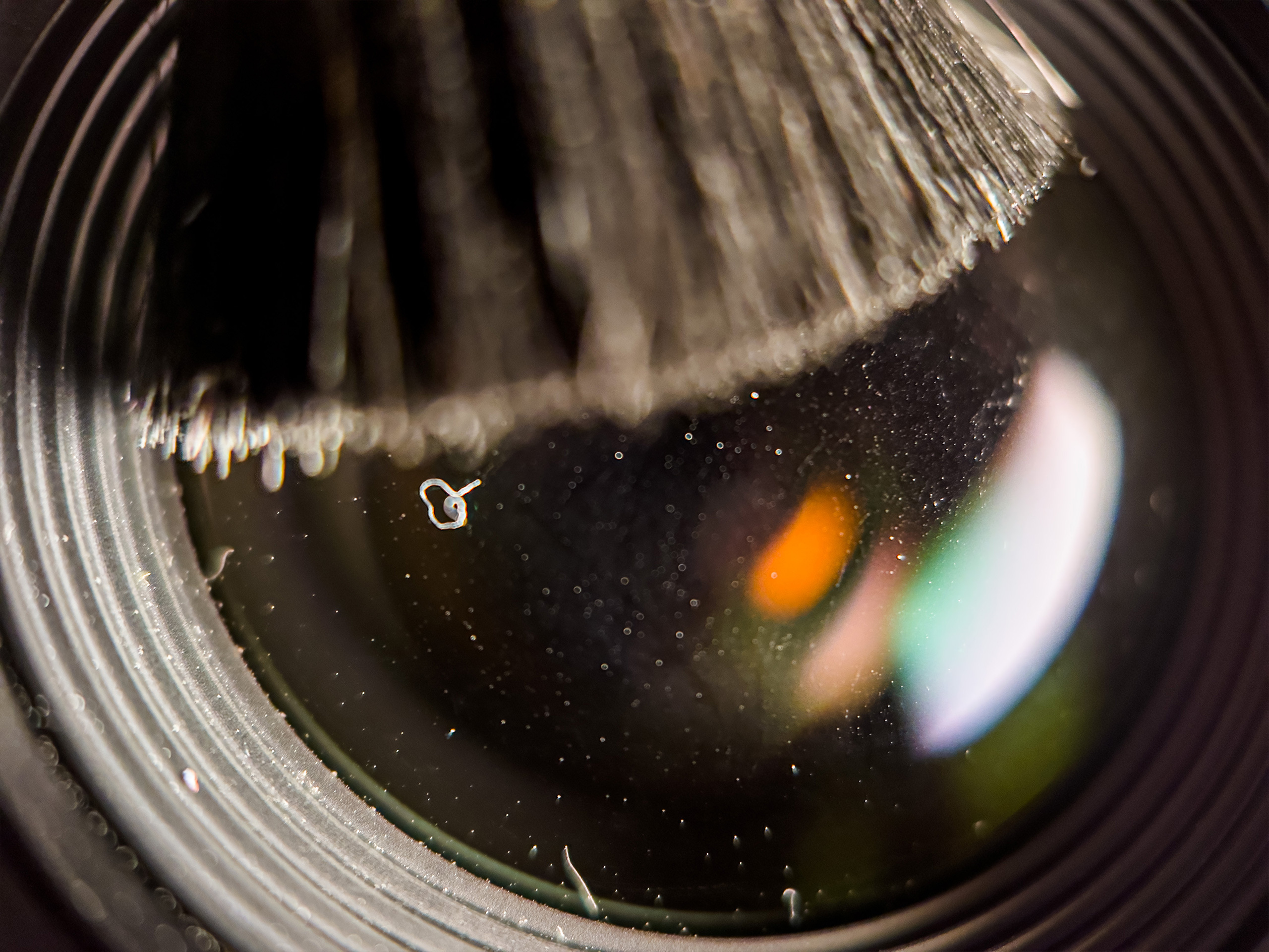 Уберите большие частички пыли, ворсинки и пух с объектива с помощью мягкой выдвижной щеткой с одной стороны ручки.