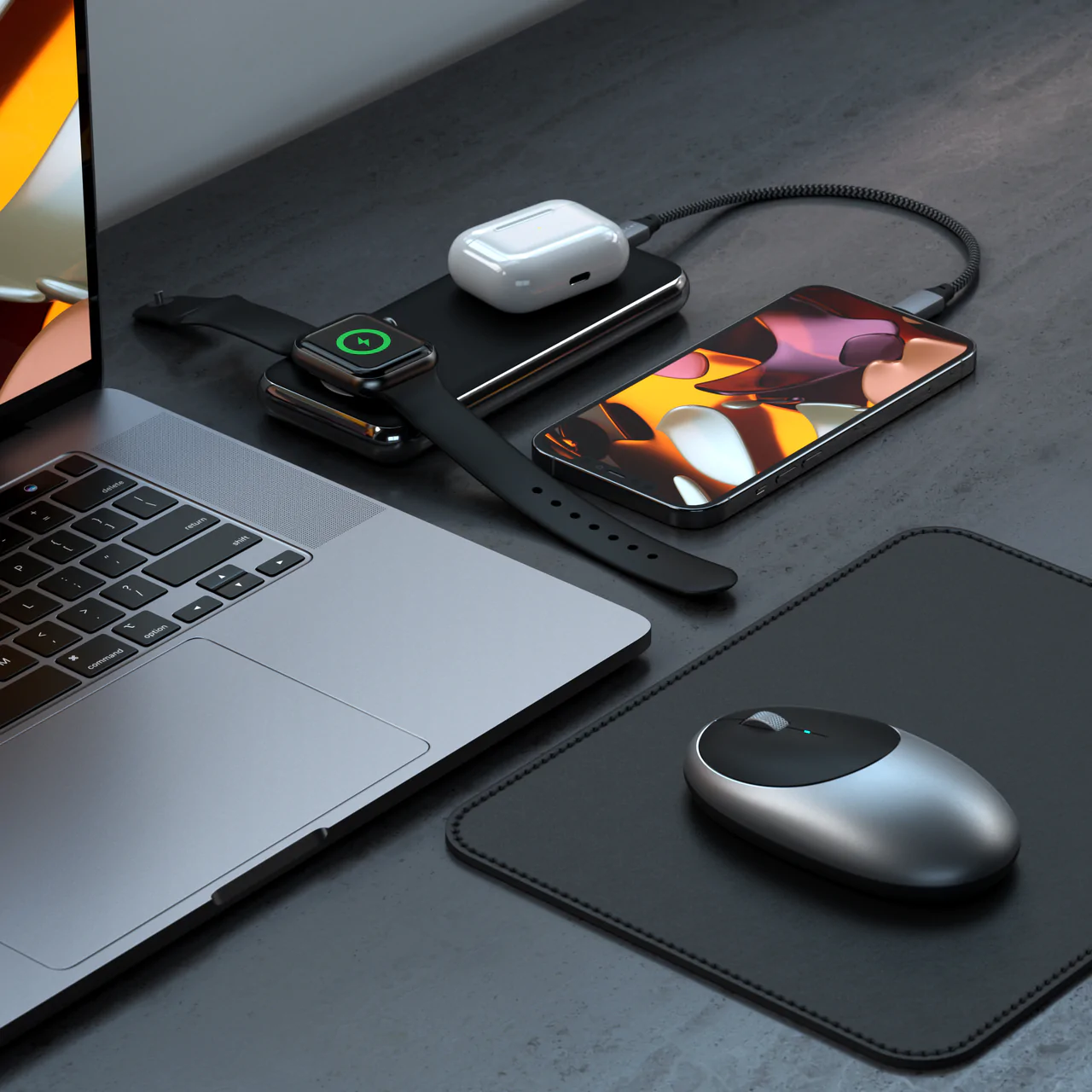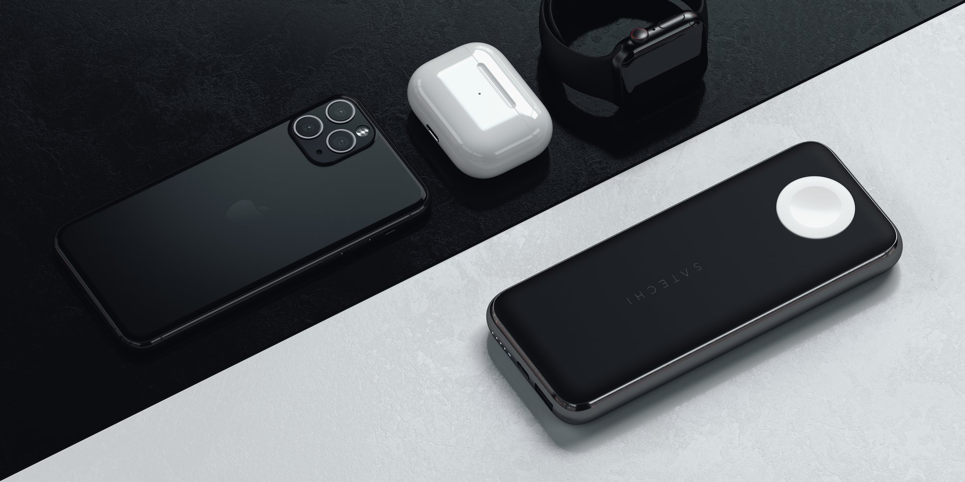 Ощутите удобство беспроводной зарядки в дороге с внешним аккумулятором Satechi Quatro Wireless Power Bank – 10000 мА/ч. Сочетая наилучшие возможности как обычной, так и беспроводной зарядки, этот внешний аккумулятор оснащен беспроводным зарядным устройством Qi, встроенным зарядным устройством для Apple Watch, USB-C PD и портом USB-A для зарядки нескольких устройств одновременно.