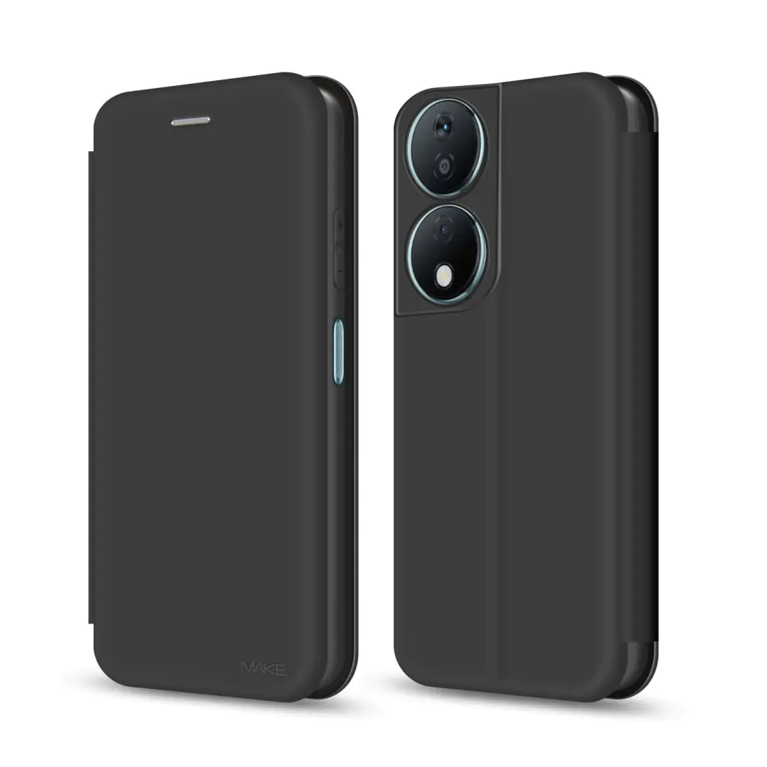 ЗАХИСТ 360Чохол-книжка Make Flip Case виготовлений з високоякісних матеріалів: термопластичного поліуретану, полікарбонату, поліуретану та мікрофібри. Він чудово захищає ваш смартфон з усіх боків, зберігає пружність, не розтягується, і не рветься.Всередині книжечки вклеєний тонкий матовий кейс, який щільно облягає корпус. Мікрофібра всередині захищає смартфон від подряпин. Сама книжка приємно тримається в руці, повністю розгортається і не погіршує зручність користування.Flip Case прекрасно захищає від бруду і пилу і дуже легко миється. Жорсткий, але пружний, він також прекрасно амортизує удар при падінні.МАГНІТНА КРИШКАЗавдяки магнітному замку, кришка чохла завжди залишається закритою, коли ви не використовуєте смартфон, захищаючи екран. Водночас, вона легко відкривається - зручно і без жодних зусиль. Магнітна кришка не створює негативного впливу на роботу екрану чи інших частин смартфону.ЗРУЧНА ПІДСТАВКАFlip Case одним легким рухом перетворюється на зручну підставку для вашого смартфона. Насолоджуйтесь переглядом ваших улюблених фільмів та відео-роликів з комфортом будь-де.ПРОТЕСТОВАНО В УКРАЇНІЧимало смартфонів мають різні версії для ринків різних країн: їх розміри і форма можуть суттєво відрізнятись.Ми тестуємо кожну модель на сумісність саме на смартфонах, офіційно продаються в українських торговельних мережах, тому впевнені у відповідності всіх розмірів і вирізів.ХАРАКТЕРИСТИКИНазва: Flip CaseВиробник: MakeFutureСумісність: Honor X7bТовщина: 3 ммМатеріал: Термопластичний поліуретан (TPU), полікарбонат, поліуретан, мікрофібраКолір: чорний