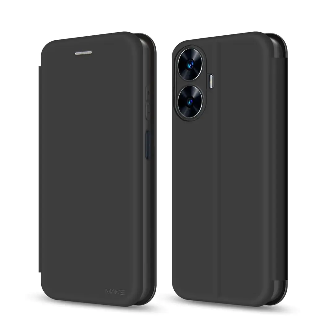ЗАХИСТ 360Чохол-книжка Make Flip Case виготовлений з високоякісних матеріалів: термопластичного поліуретану, полікарбонату, поліуретану та мікрофібри. Він чудово захищає ваш смартфон з усіх боків, зберігає пружність, не розтягується, і не рветься.Всередині книжечки вклеєний тонкий матовий кейс, який щільно облягає корпус. Мікрофібра всередині захищає смартфон від подряпин. Сама книжка приємно тримається в руці, повністю розгортається і не погіршує зручність користування.Flip Case прекрасно захищає від бруду і пилу і дуже легко миється. Жорсткий, але пружний, він також прекрасно амортизує удар при падінні.МАГНІТНА КРИШКАЗавдяки магнітному замку, кришка чохла завжди залишається закритою, коли ви не використовуєте смартфон, захищаючи екран. Водночас, вона легко відкривається - зручно і без жодних зусиль. Магнітна кришка не створює негативного впливу на роботу екрану чи інших частин смартфону.ЗРУЧНА ПІДСТАВКАFlip Case одним легким рухом перетворюється на зручну підставку для вашого смартфона. Насолоджуйтесь переглядом ваших улюблених фільмів та відео-роликів з комфортом будь-де.ПРОТЕСТОВАНО В УКРАЇНІЧимало смартфонів мають різні версії для ринків різних країн: їх розміри і форма можуть суттєво відрізнятись.Ми тестуємо кожну модель на сумісність саме на смартфонах, офіційно продаються в українських торговельних мережах, тому впевнені у відповідності всіх розмірів і вирізів.ХАРАКТЕРИСТИКИНазва: Flip CaseВиробник: MakeFutureСумісність: Realme C55Товщина: 3 ммМатеріал: Термопластичний поліуретан (TPU), полікарбонат, поліуретан, мікрофібраКолір: чорний