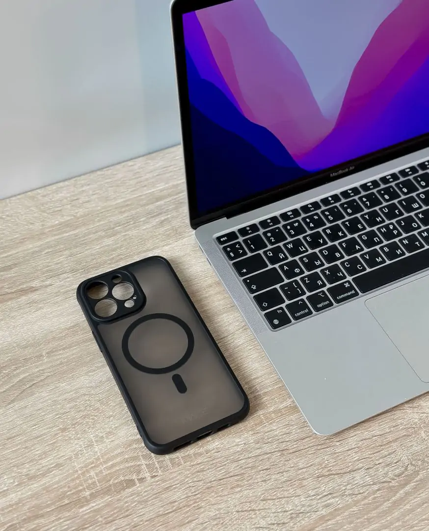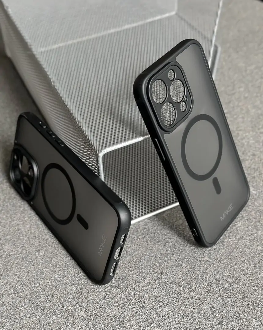 Чохол MAKE Frame Magnet поєднує надійний захист + строгий та елегантний дизайн:суцільний захист лінз камервбудована система магнітів сумісна з технологією бездротового заряджання MagSafe від Appleзадня частина з жорсткого високоякісного полікарбонату з напівпрозорим матовим покриттямгнучкі борти з термопластичного поліуретану з приємним soft-touch покриттямяскраві кнопки - оригінальний акцент, що виділяє з-поміж іншихзахисні подушечки на кутах амортизують при падіннісумісний з будь-яким захисним склом
