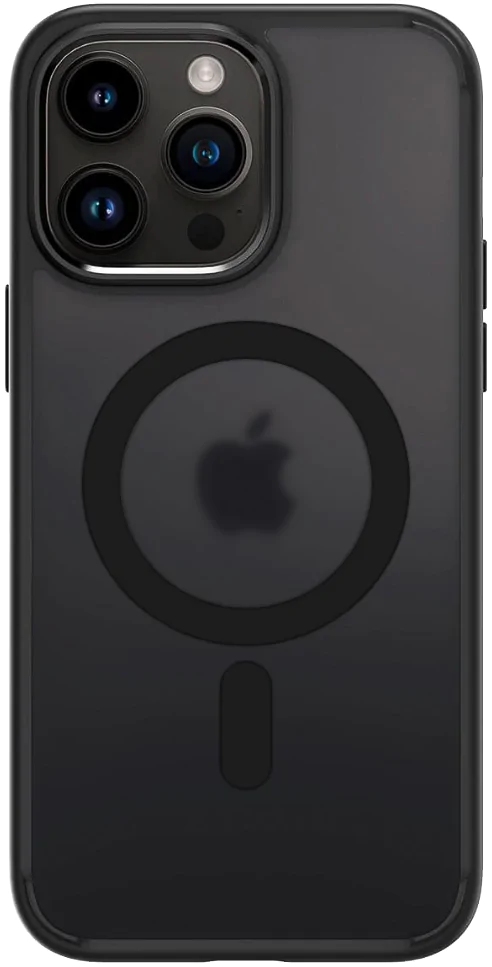 Полупрозрачный черный чехол Monbaln для iPhone с поддержкой MagSafe. Отличный вариант для тех кто хочет стильно защитить свой iPhone, поскольку он не скрывает оригинальный цвет вашего iPhone, а затемняет его делая цвет более строгим и лаконичным. При этом защищает устройство от царапин и других механических повреждений, которые могут появиться в результате повседневного использования. Благодаря высокому бамперу над экраном и камерой вы можете класть iPhone на стол и не бояться что поцарапается камера или экран.