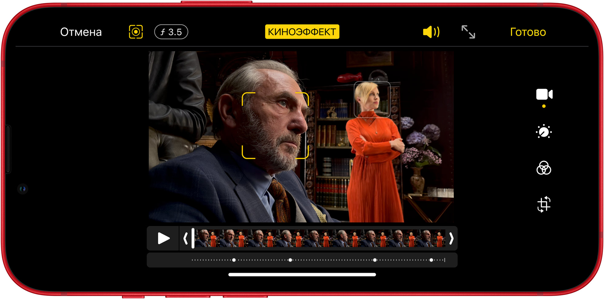 Кинематографический режим так же может предвидеть, когда новый заметный объект вот-вот появится в сцене, и автоматически сменит фокус, когда это произойдет. Теперь вы можете без особых усилий создавать видео, которые похожи на фильмы.