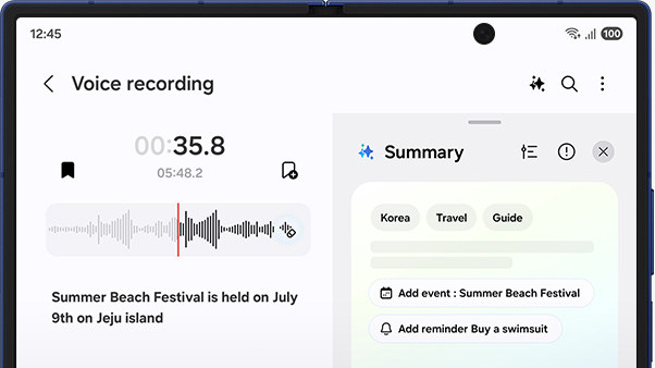 Функция Transcript Assist расшифровывает аудиозаписи и упорядочивает их в заметки, создавая удобные сводки. Galaxy AI даже предложит напоминания и расписание на основе содержания вашей записи.