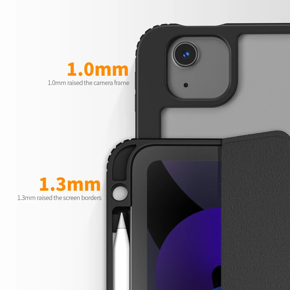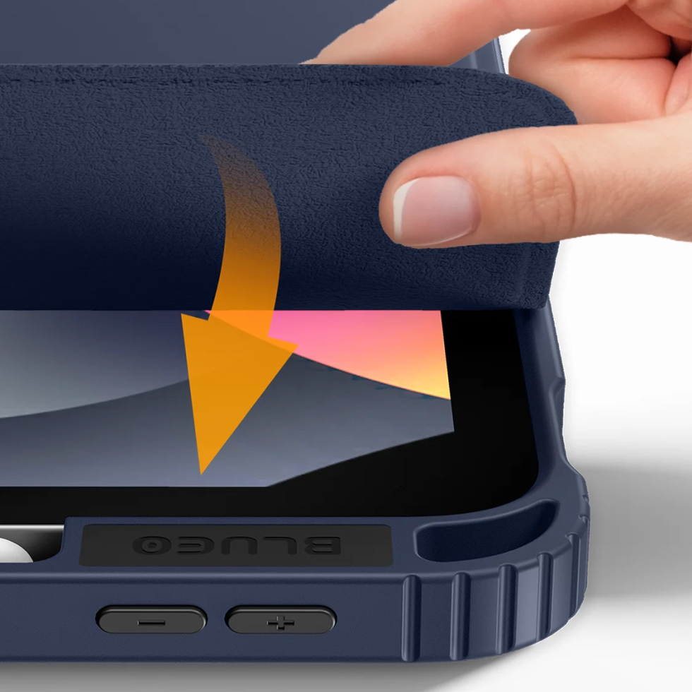 Чехол Blueo APE Folio выдерживает падение с высоты до 1 метра и соответствует военным стандартам. Усиленные углы надёжно амортизируют удары и предотвращают повреждения iPad при падении.