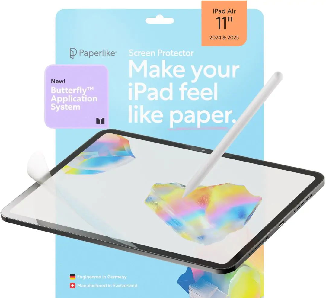 Именно поэтому компания Paperlike потратила 3 года, чтобы полностью переосмыслить этот процесс. Результат — система Butterfly Application: более умное решение, которое обеспечивает идеальное выравнивание, без пузырей и без стресса.