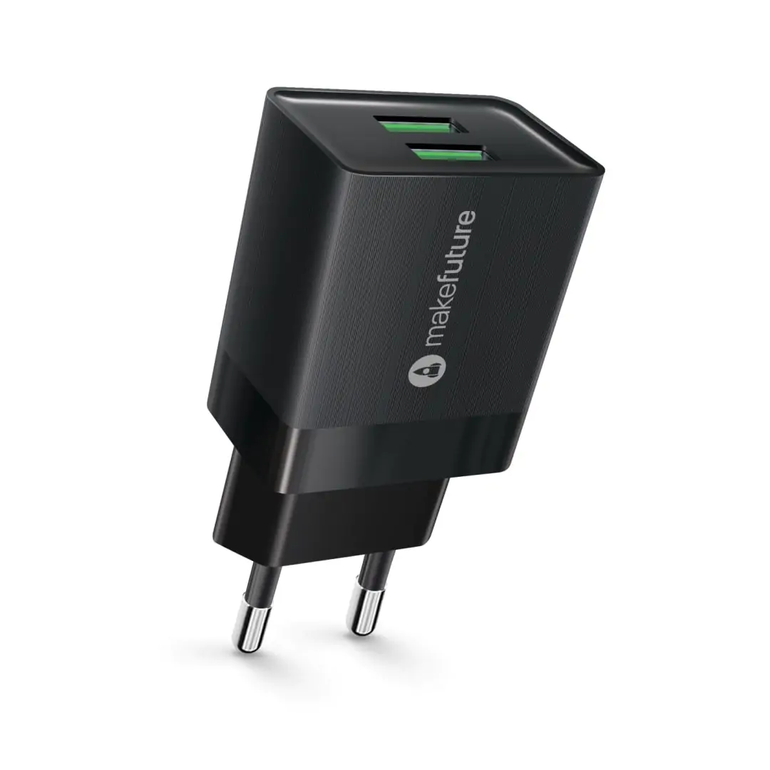 Зарядний пристрій мережевий MakeFuture 12W 2USB 2.4A Auto-ID Black