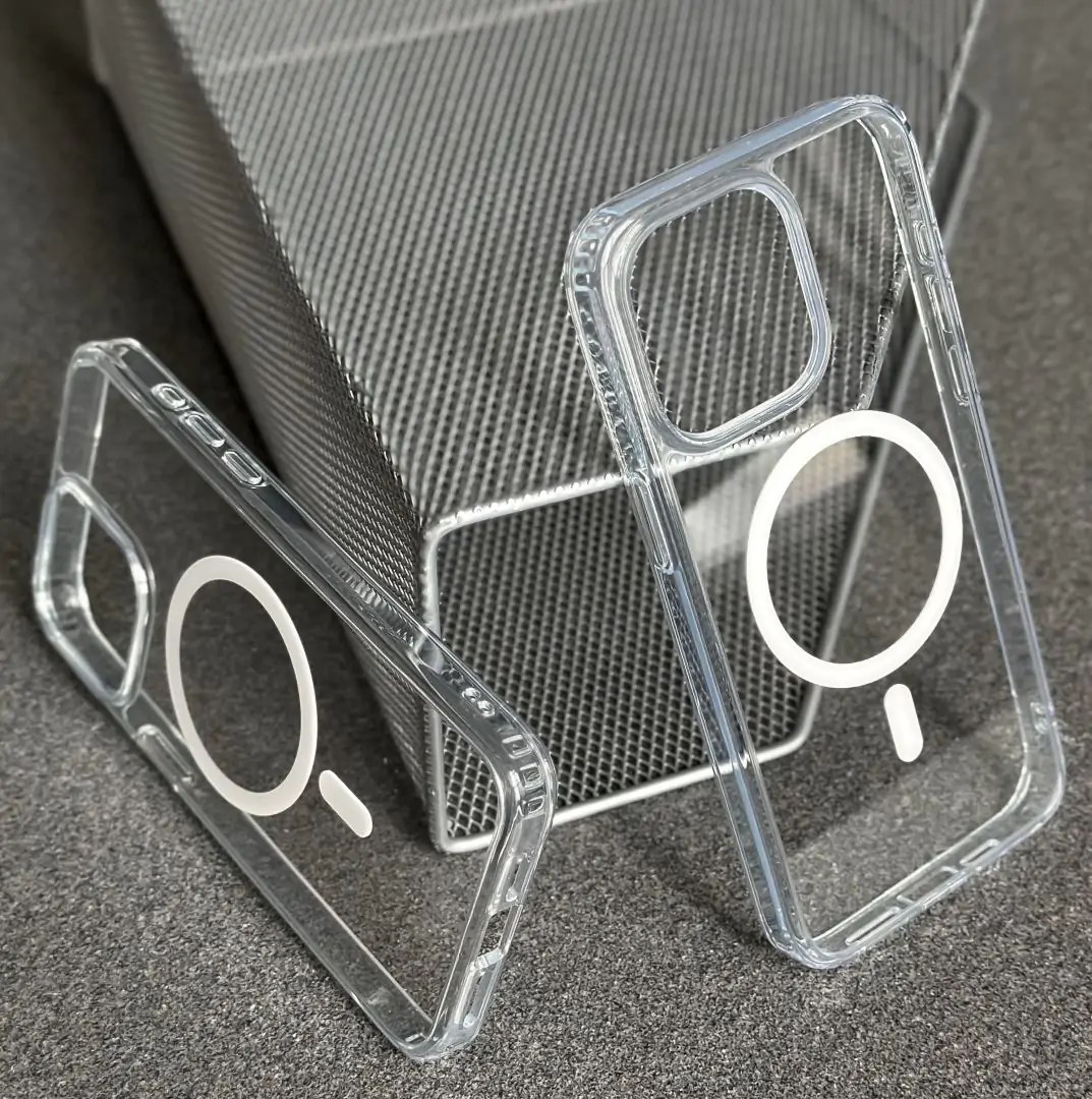 Захисний кейс Crystal Magnet Case виготовлено з високоякісного полікарбонау та термопластичного поліуретану. Він прозорий, жорсткий і міцний ззаду та має гнучкі борти, що зберігають пружність, не розтягуються, тому він дуже зручно одягається на смартфон.Він не збільшує розмір вашого смартфона, щільно облягає корпус, і надійно тримається в руці, тому не погіршує зручність користування.Вбудована система магнітів сумісна з технологією бездротового заряджання MagSafe від Apple. Положення магнітів в чохлі МАКЕ точно відповідає магнітам під задньою кришкою iPhone, тому він легко з’єднується зі смартфоном і з сумісними бездротовими зарядними пристроями.Магніти допомагають чітко відцентрувати та надійно утримувати зарядний пристрій для максимальної ефективності заряджання. ДОДАЙ WOW-ЕФЕКТУ Справжній WOW-ефект підклеслить ваший особистий стиль та додасть грайливості. При цьому, надійно захищаючи, він тримає ваш девайс в бездоганному вигляді увес час користування. ПРОТЕСТОВАНО В УКРАЇНІ Чимало смартфонів мають різні версії для ринків різних країн: їхні розміри та форма можуть суттєво відрізнятись. Ми тестуємо кожну модель на сумісність саме на смартфонах, що офіційно продаються в українських торгових мережах, тому впевнені у відповідності всіх розмірів та вирізів. НАДІЙНИЙ ЗАХИСНИК Crystal Magnet Case прекрасно захищає від бруду та пилу, і дуже легко миється. Жорсткий і твердий, він також чудово захищає ваш смартфон від подряпин та амортизує удар при падіннях. ХАРАКТЕРИСТИКИ Назва: Crystal Magnet Case Сумісність: iPhone 15 Pro Max Товщина: 1,5 мм Матеріал: Полікарбонат (PC), Термопластичний поліуретан (TPU) Колір: прозорий